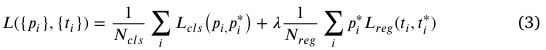 식 3은 훈련 중 RPN의 손실 함수