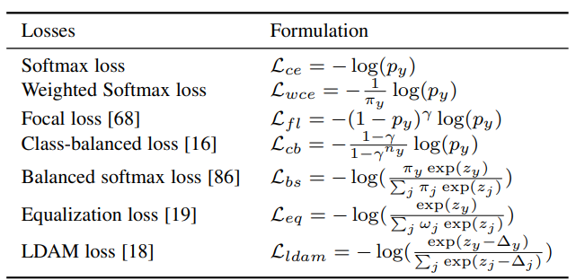 cost_sensitive learning (Weighted Softmax, Focal loss, LDAM, ESQL, Balancfed Softmax, LADE)