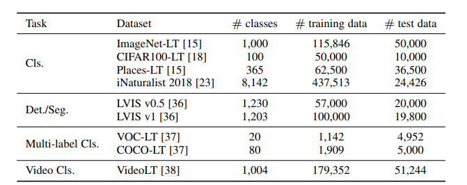 long-tailed 이미지 분류 분야에서는 4개의 benchmark dataset이 있다.