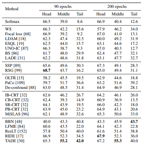 즉, TADE의높은 성능은 long-tailed 성능이 클래스 성능에 대한 절충안이다.